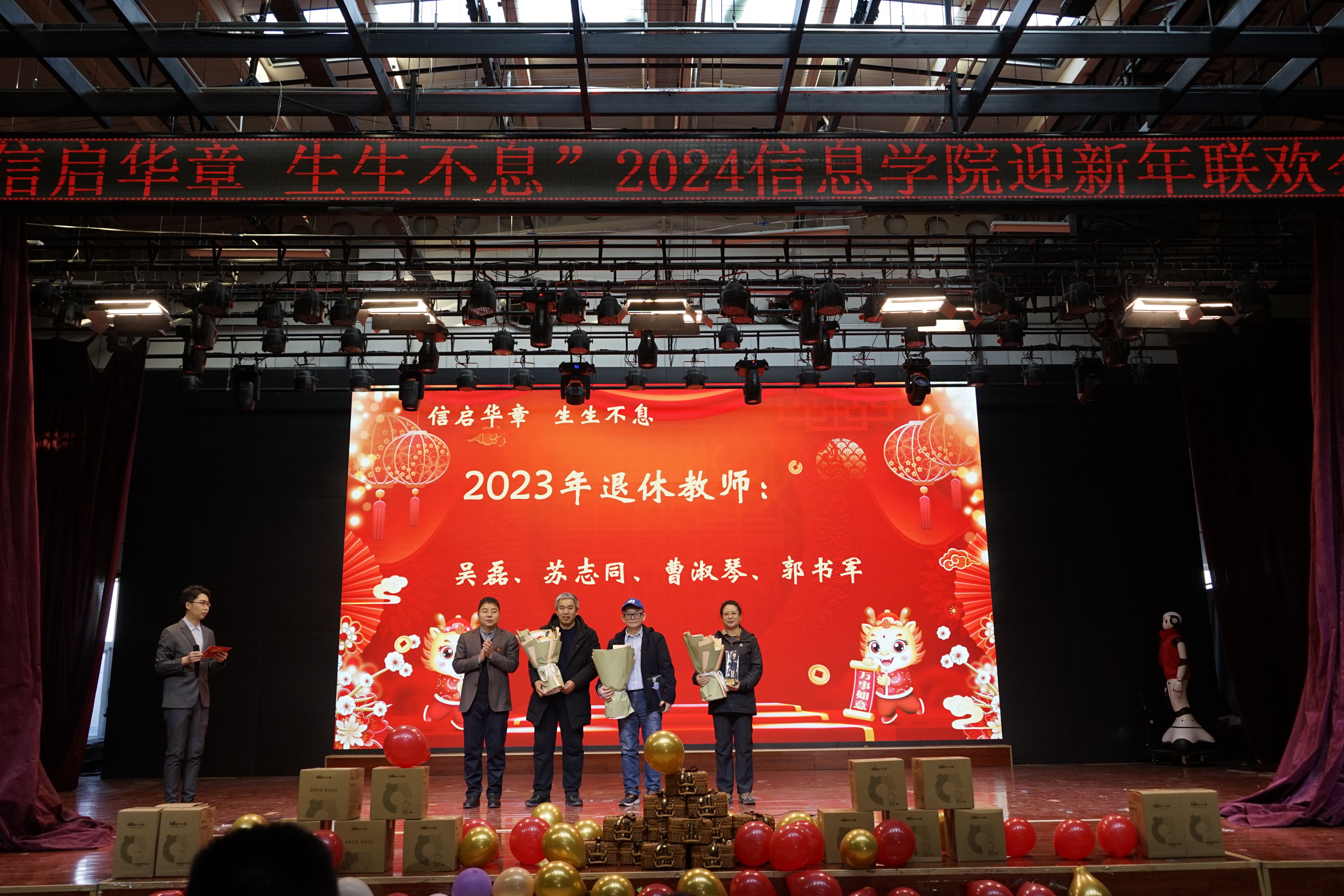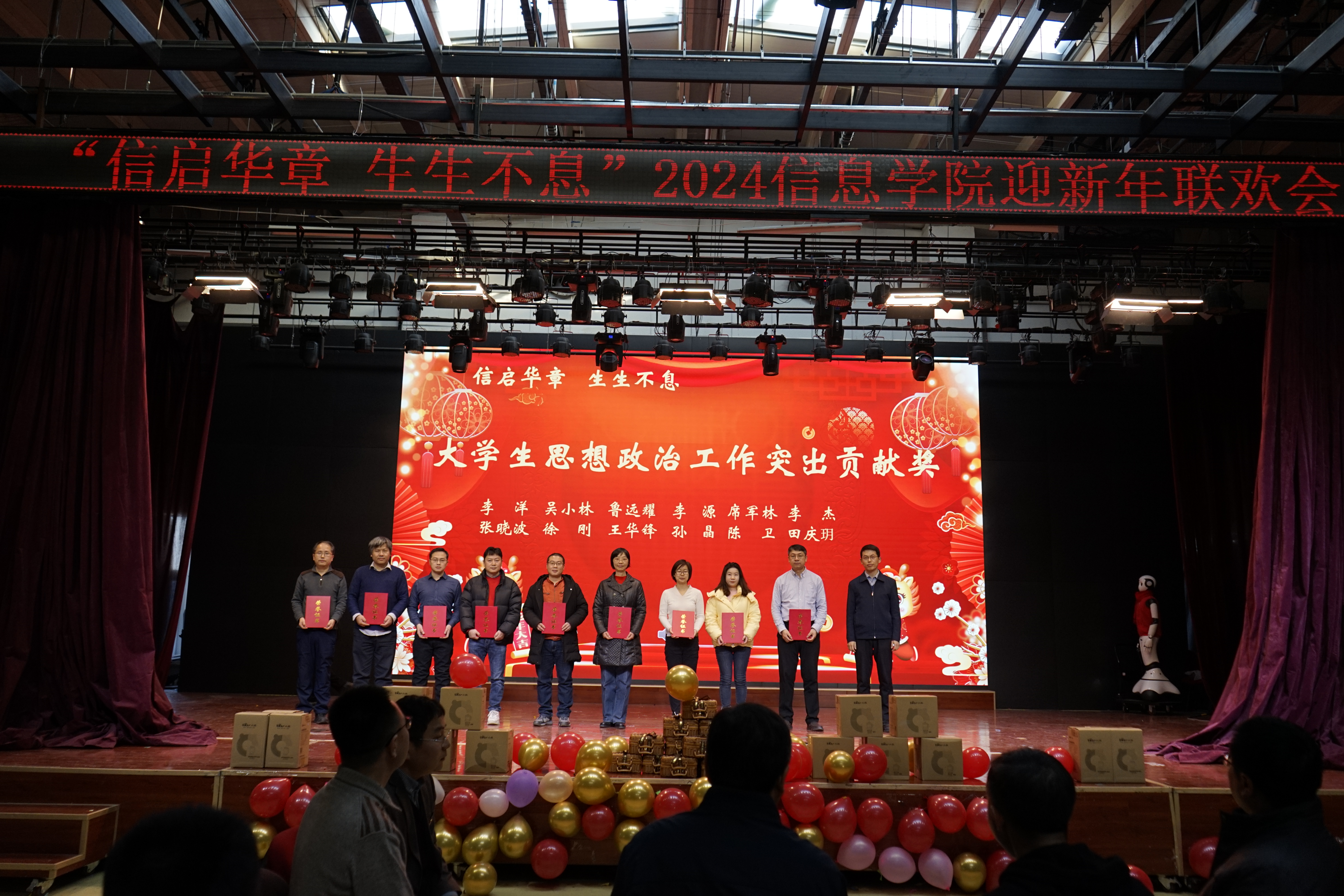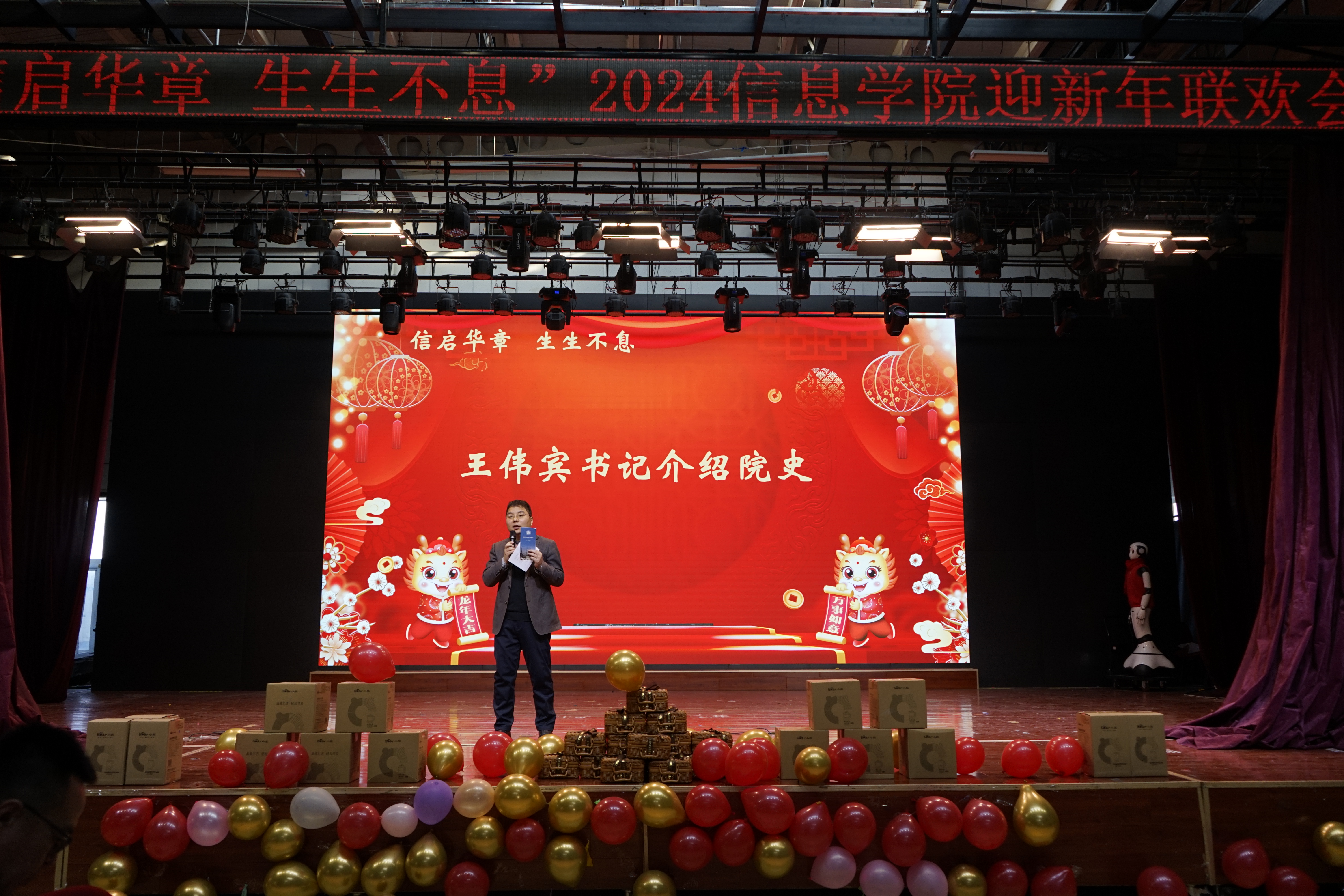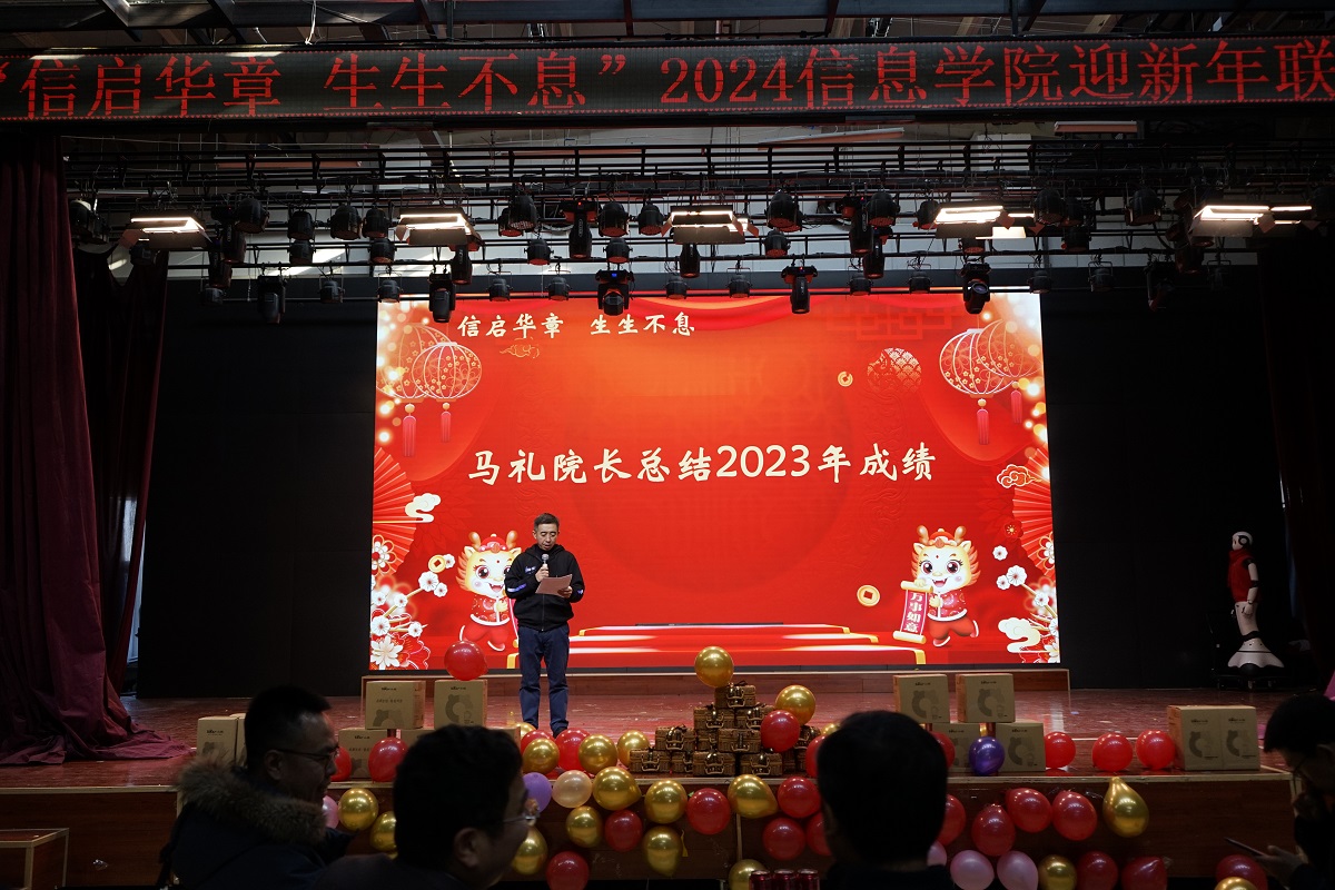 年年辞旧不忘初心,岁岁迎新砥砺前行。1月5日下午,信息学院2023年度工作总结表彰大会暨“信启华章 生生不息”2024年新年联欢会在学生服务楼四层隆重举行。校党委副书记史贞军、科研院院长李全明、学工部部长孙宗瑞等领导出席本次活动。