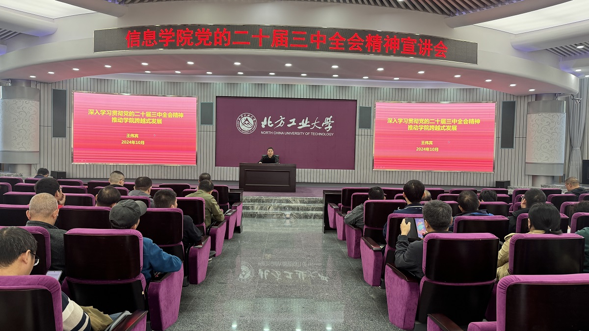 为深入学习贯彻党的二十届三中全会精神,引导学院广大师生将思想和行动统一到党中央的决策部署上来,推动学院事业高质量发展,10月15日上午,信息学院在广学楼报告厅召开深入学习贯彻党的二十届三中全会精神宣讲会,学院党委书记王伟宾作宣讲,全体教职工参加。